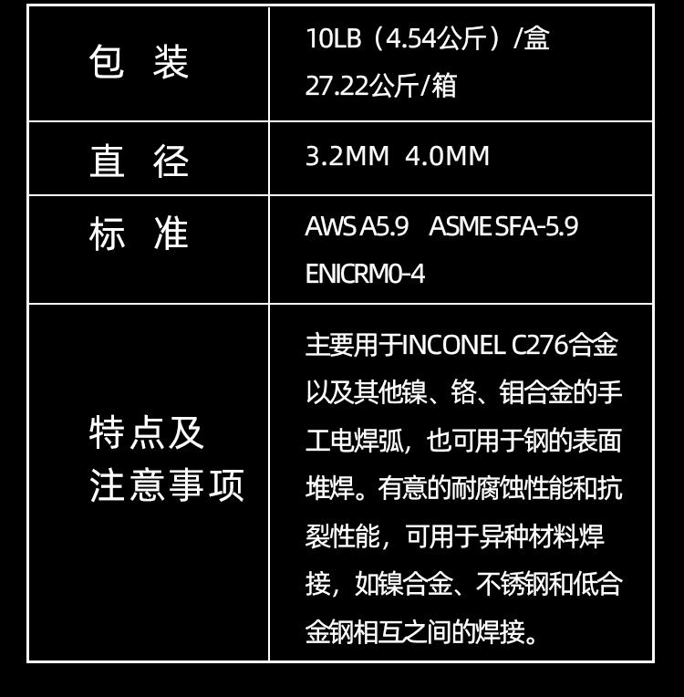 類(lèi)別 | 鎳基合金焊條 | ||